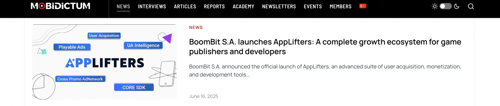 This leading global platform for the mobile gaming industry spotlighted BoomBit’s latest initiative, highlighting its strengths and standout position in the market. We’re proud to be turning heads and making waves with AppLifters – and we’re just getting started.